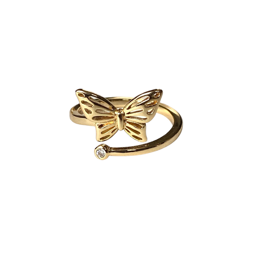 Get ready to flutter through the day with Brielle, the playful and stylish adjustable butterfly ring. Its gold filled band and sparkling cz stone will add a touch of whimsy to any outfit. As seen on "The Bachelorette," Jenn Tran. Perfect for the free-spirited fashionista!
