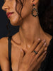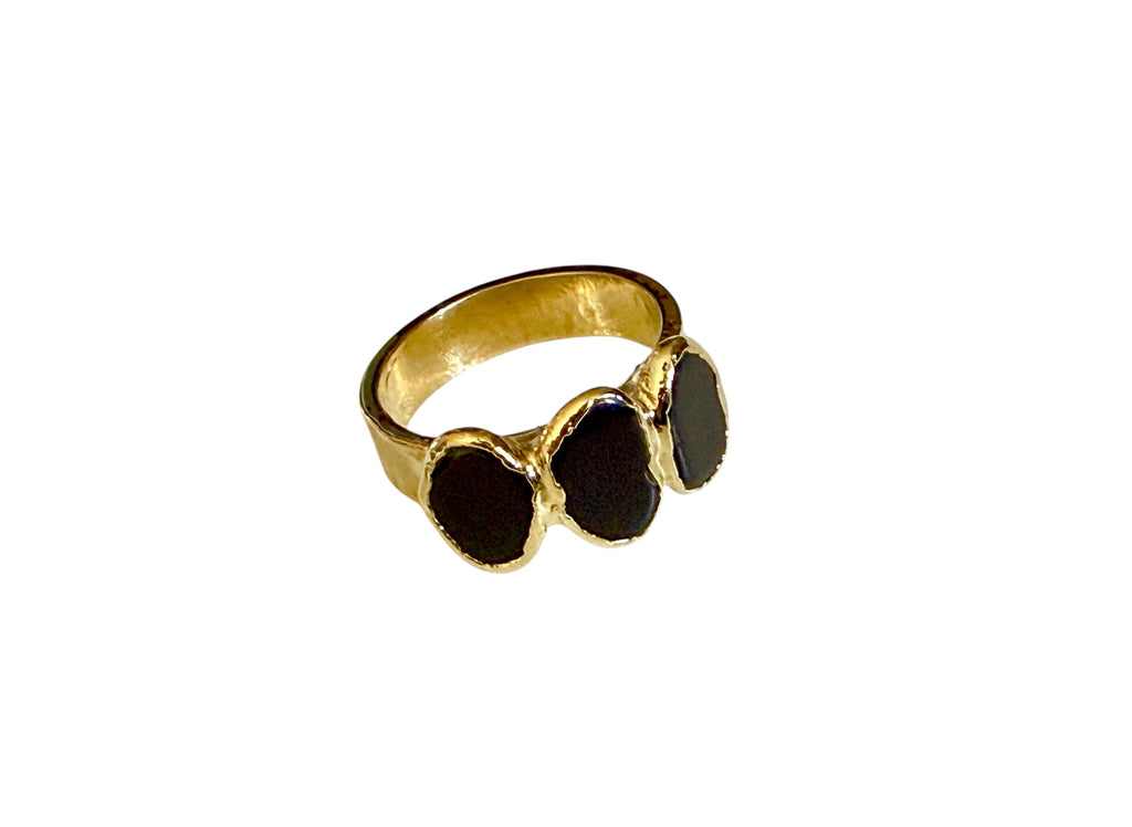 Shadow stone of protection: Make a striking statement with this triple organic oval obsidian stone ring. Its bold design combines three natural obsidian stones, each with deep, glossy black hues that capture light and mystery. This ring exudes raw power and confidence, perfect for those who dare to stand out and embrace their unique edge. Wear it as a bold accent to any outfit and let your fearless spirit shine.