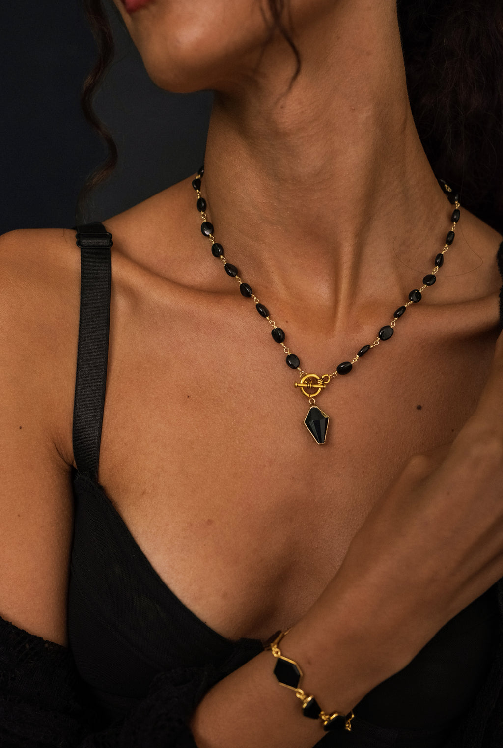 A secret just for you: Unleash bold energy with the Rune bracelet, featuring organic onyx stones. This daring piece blends raw natural power with edgy design, perfect for those who refuse to blend in and demand attention.