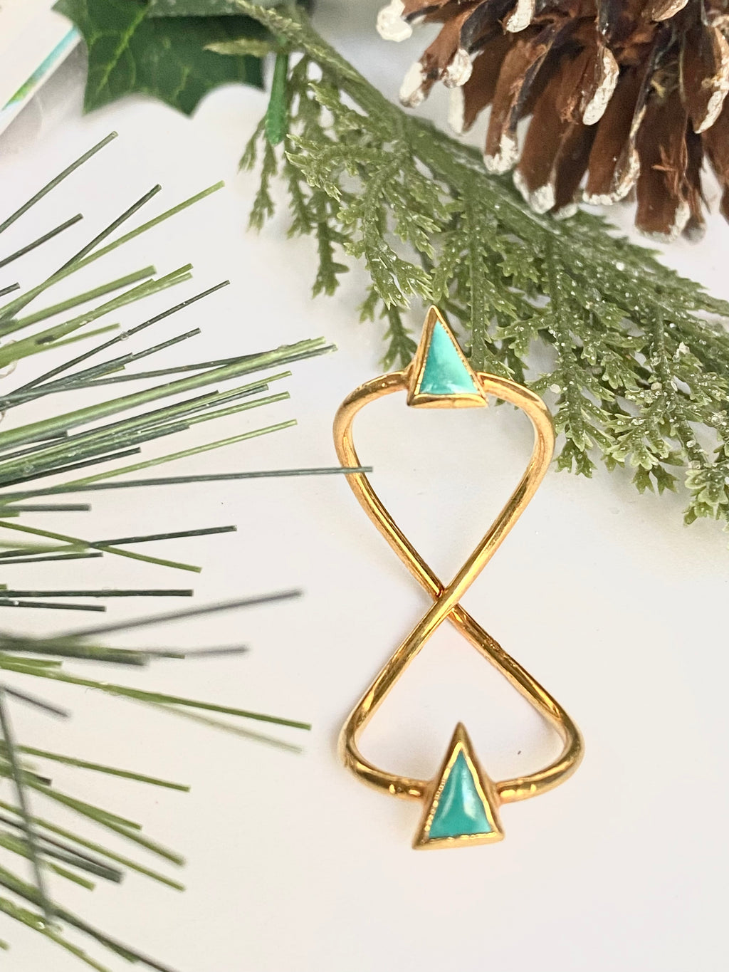 This turquoise triangle infinity ring is the perfect accessory for your everyday look. Crafted with a small turquoise triangles, the ring is size 7 on the top part and size 8 on the bottom part. Show off your timeless style with this timeless piece.