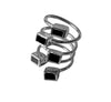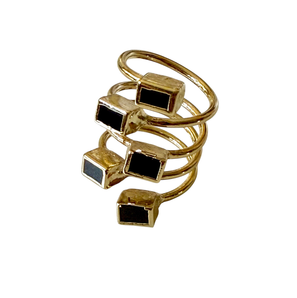 Wild, raw, and unapologetic:  Feral is a striking spiral wire ring featuring five stacked rectangular obsidian stones, each measuring 1/4 inch. This bold design exudes confidence and edge, making it the perfect statement piece for those who embrace fearless style.