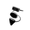 Constant changes, eternal balance: The Flux ring boldly intertwines three striking stones—lava, obsidian oval, and onyx triangle—wrapped in an edgy spiral wire design. Each stone, about half an inch around, brings raw energy and mystique, making this piece a fearless statement of style and power. Perfect for those who dare to stand out.